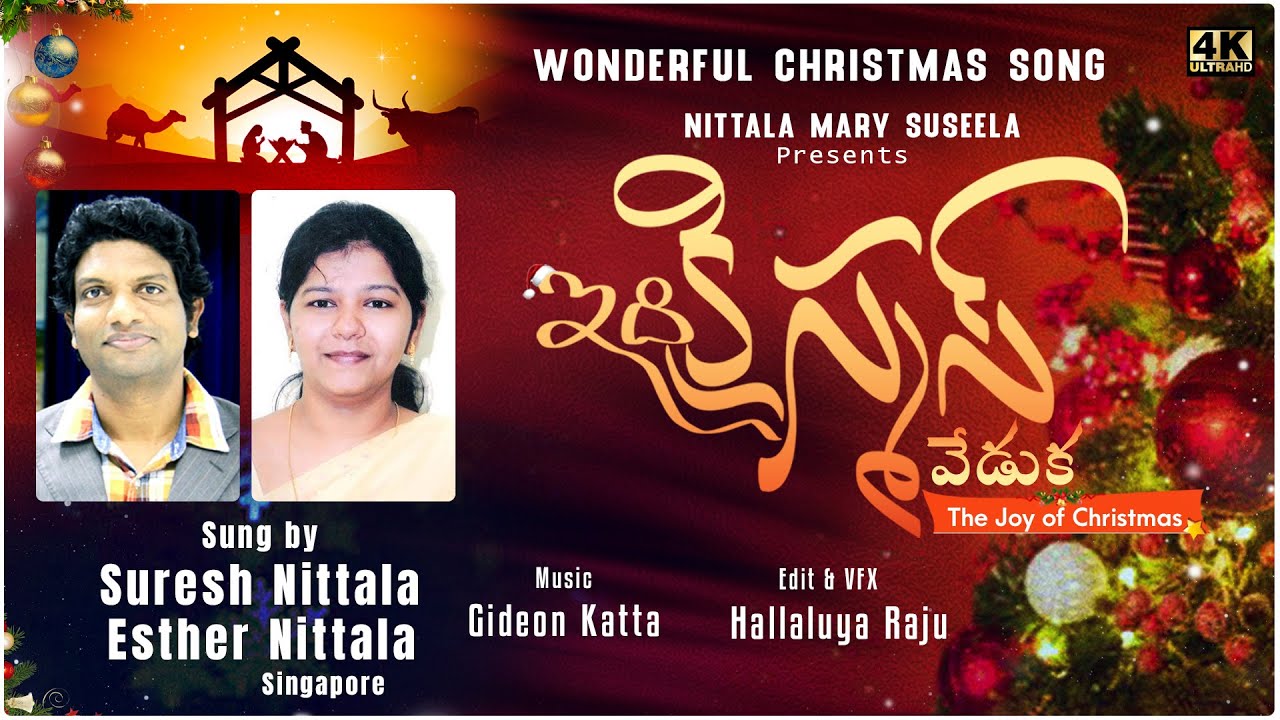 Idi Christmas Veduka is the latest Christian Telugu song from the album, Na Jeevitham Neekankitham written & tuned by Bro Suresh Nittala (singapore), sung by Suresh Nittala, Esther Nittala & Marvel and music composed by Gideon. This song was released on November 23, 2021 through Suresh Nittala YouTube channel.