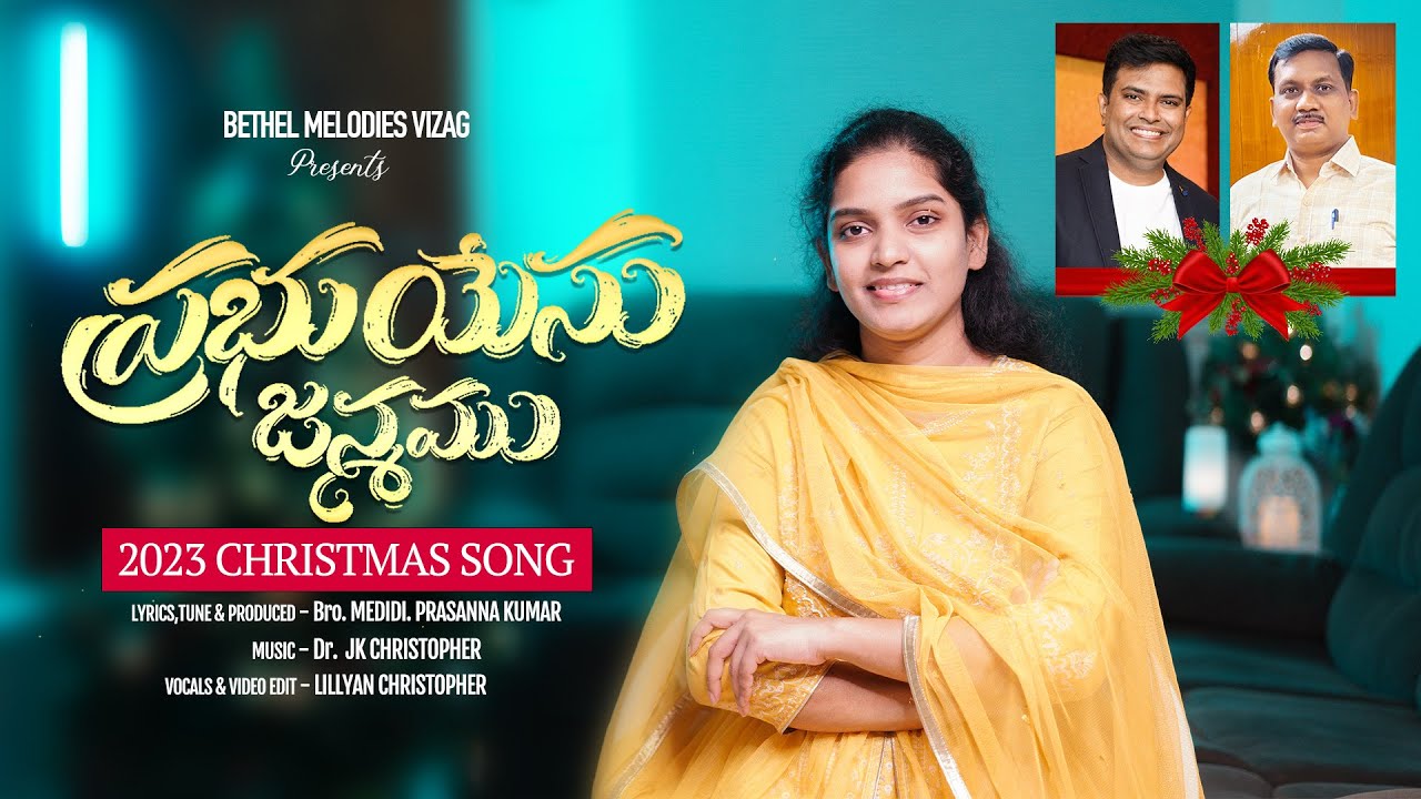 Prabhu Yesu Janmamu is the latest Telugu Christmas song written, tuned and produced by Medidi Prasanna kumar, sung by Lillyan Christopher and music composed by renowned Telugu Christian music director, J K Christopher. This song video was released on December 23, 2023 through Sharon Sisters YouTube Channel.